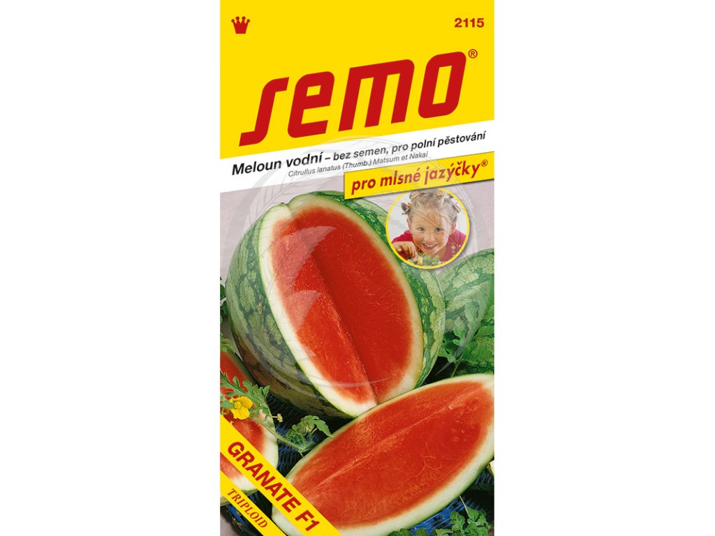 Granate F1 Meloun vodní je bezsemenný žíhaný meloun váží 5–7 kg. Je oválný, zelený s proužkovanou slupkou, jeho dužina je pevná, sytě červená a velmi sladká s vysokým obsahem cukru, až 12 %.